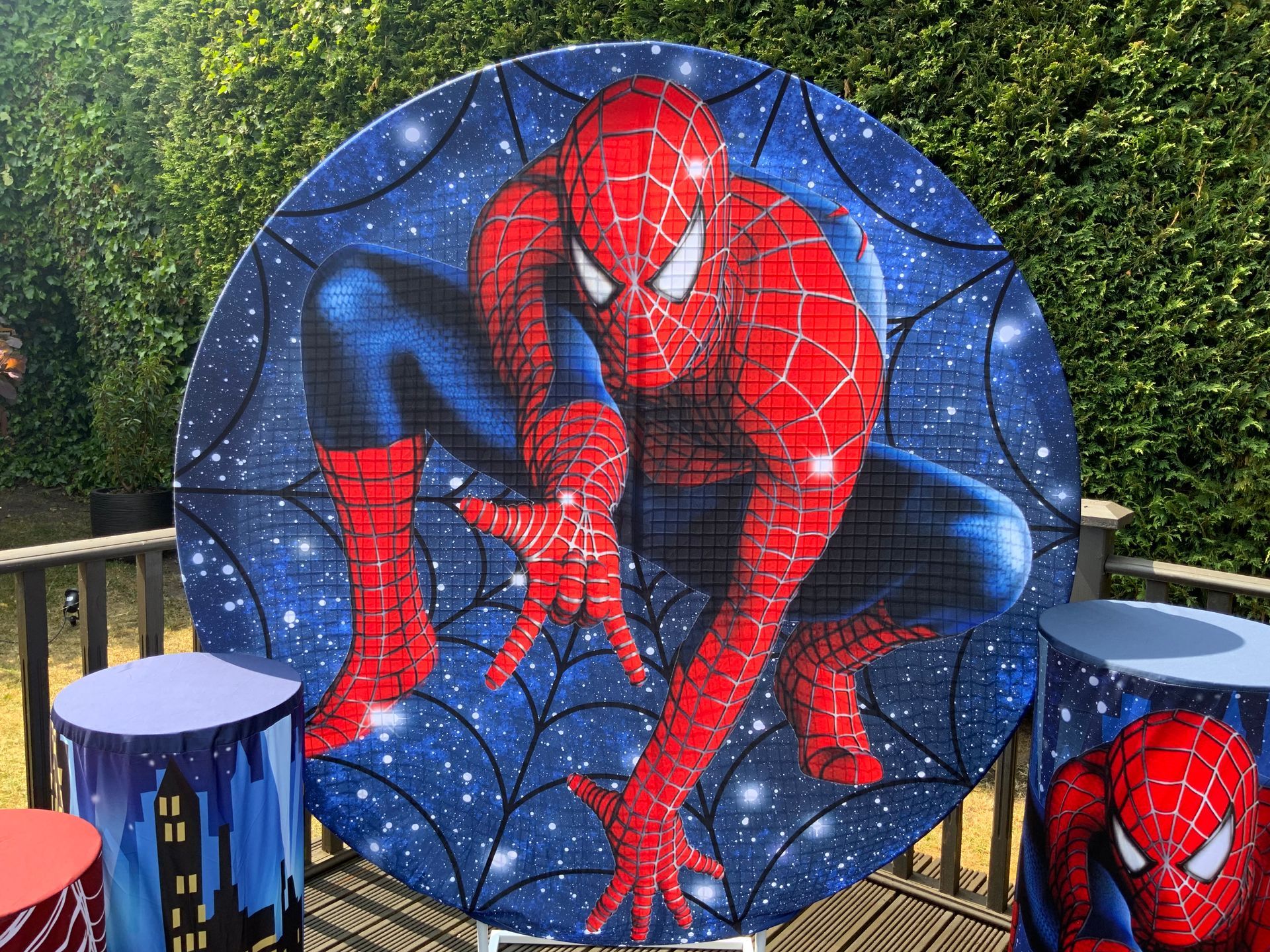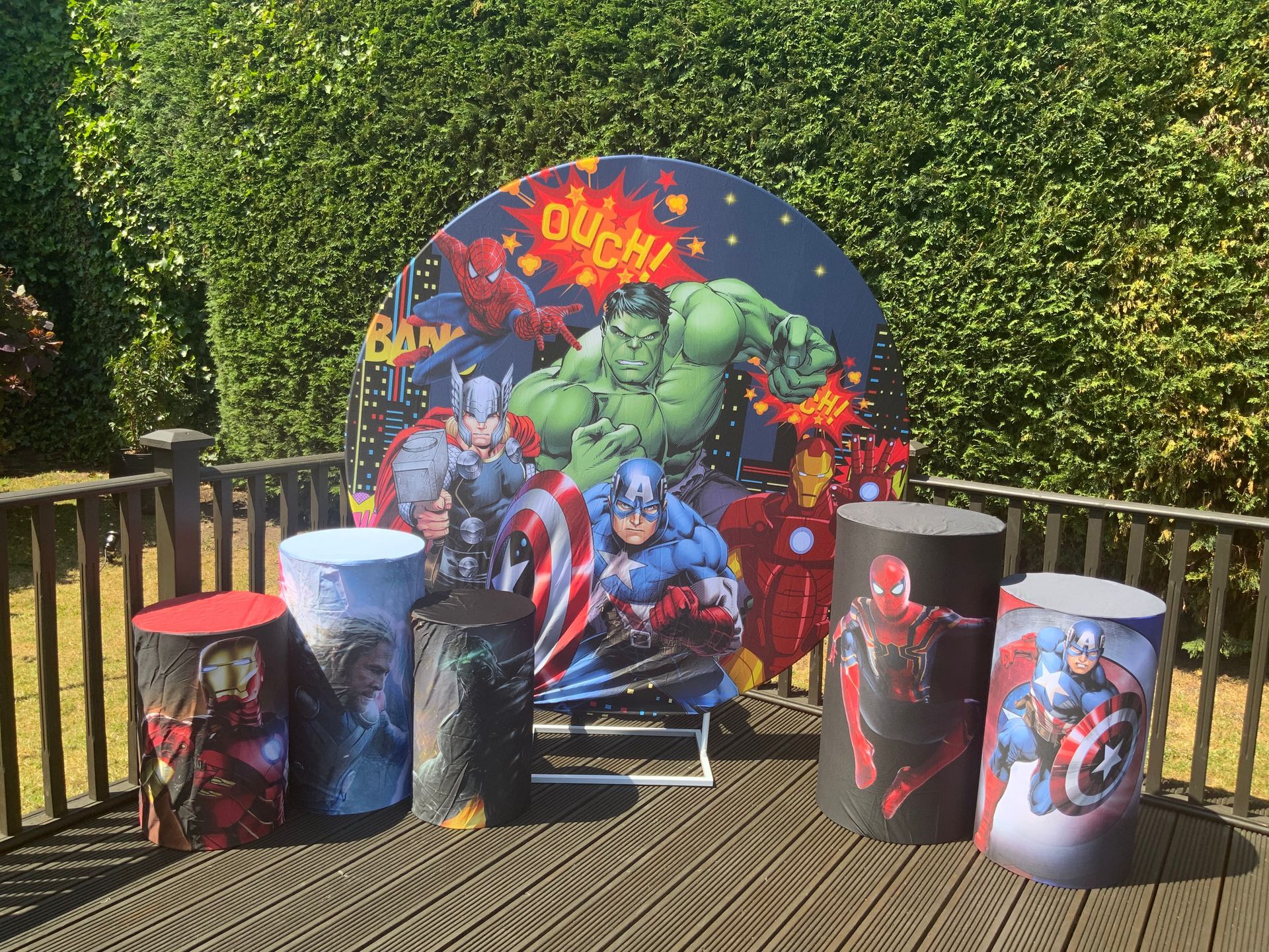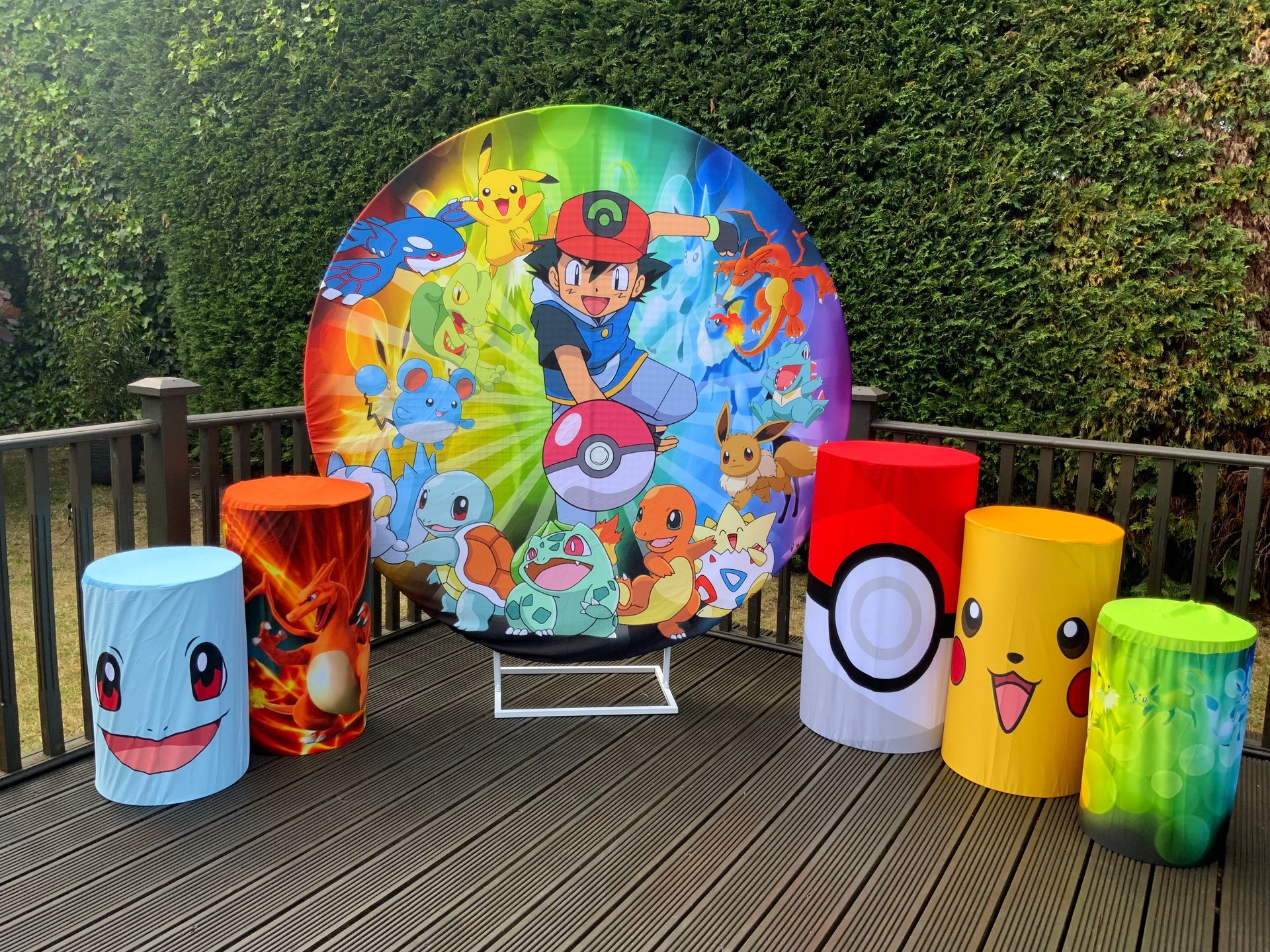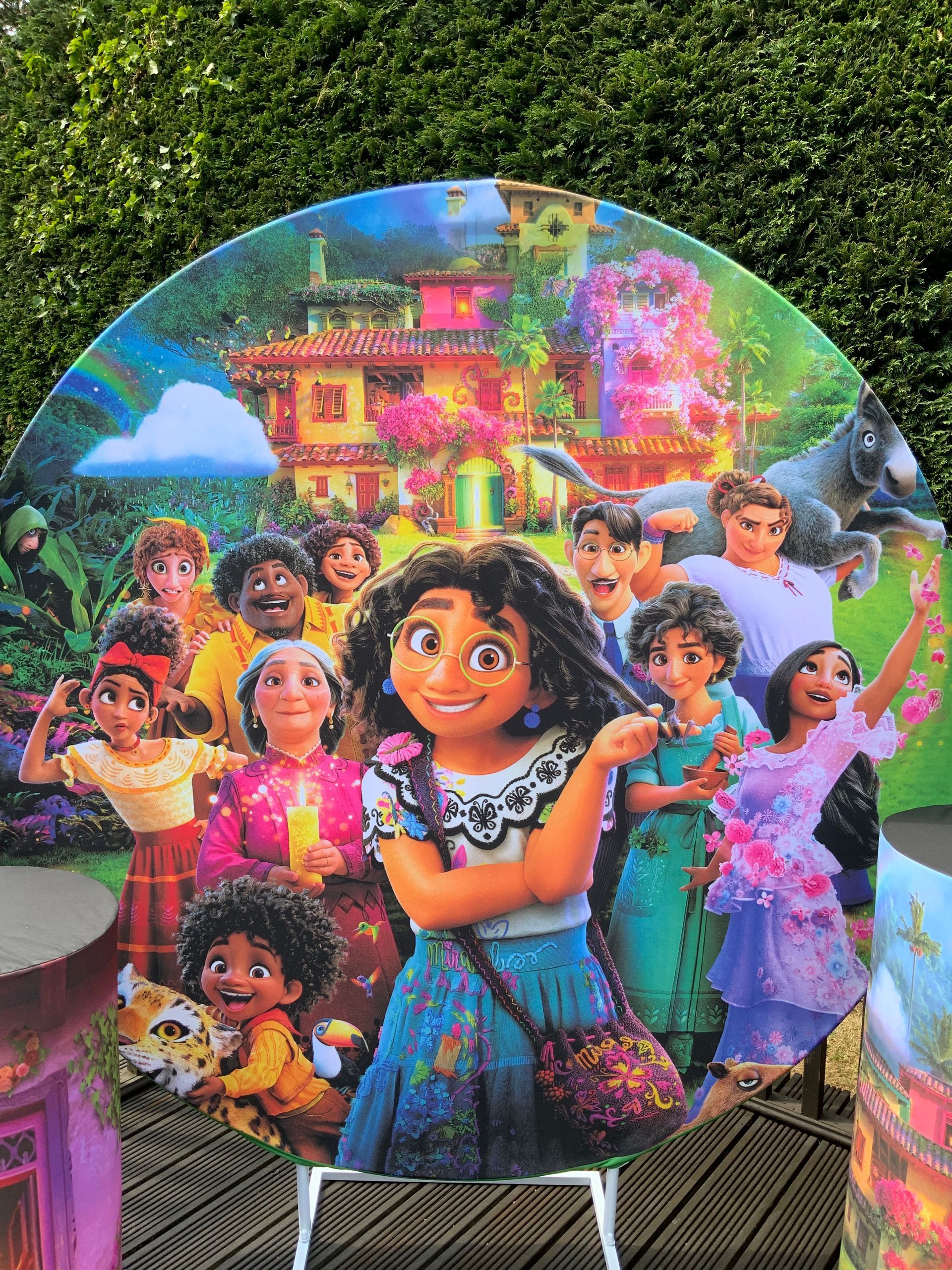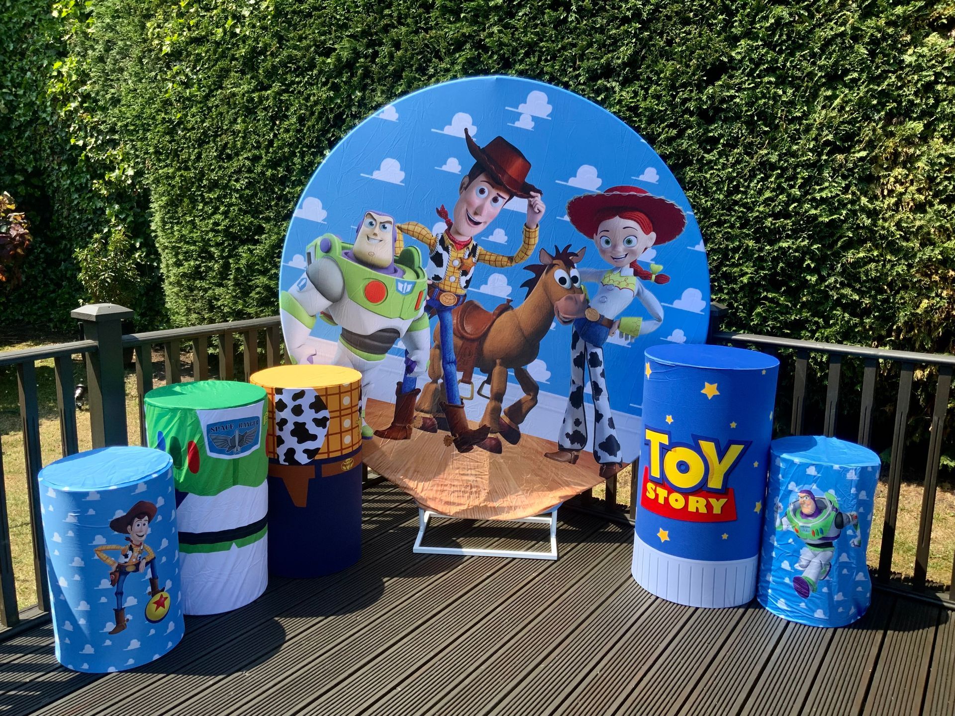 Our themes look absolutely stunning and will totally transform the space. The 6ft circle background is accompanied by 5 podium stands. Clients typically use the backdrop as their main photo area.