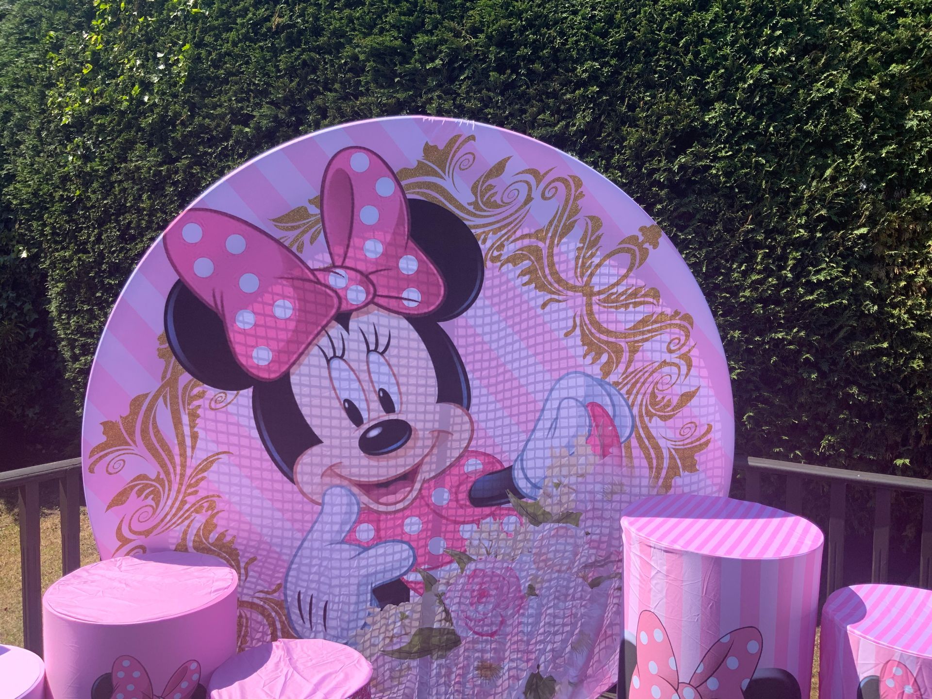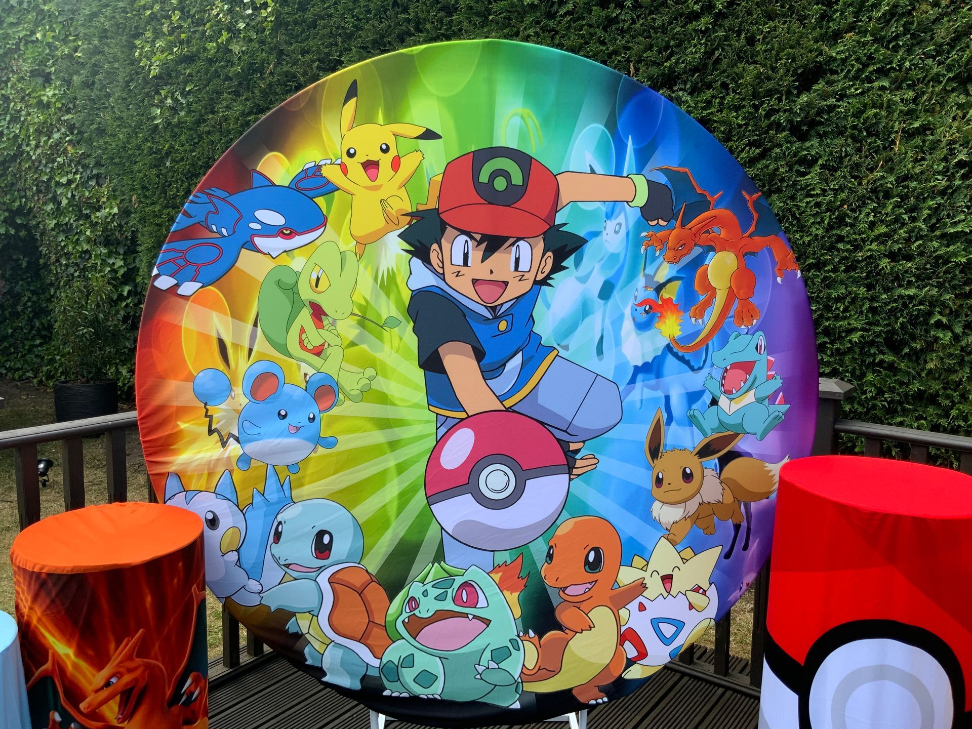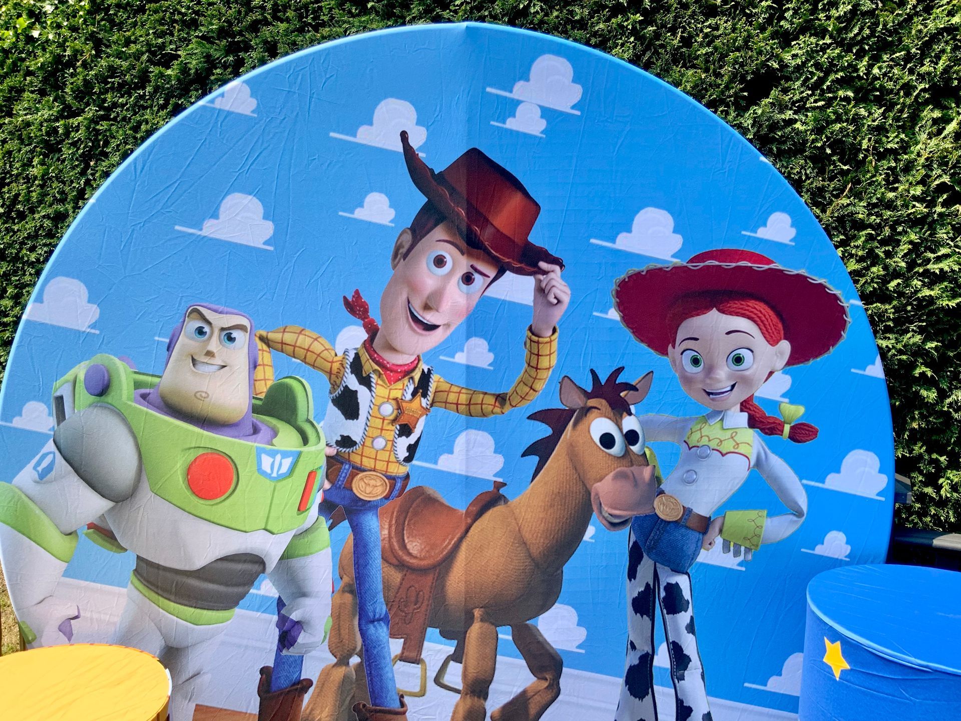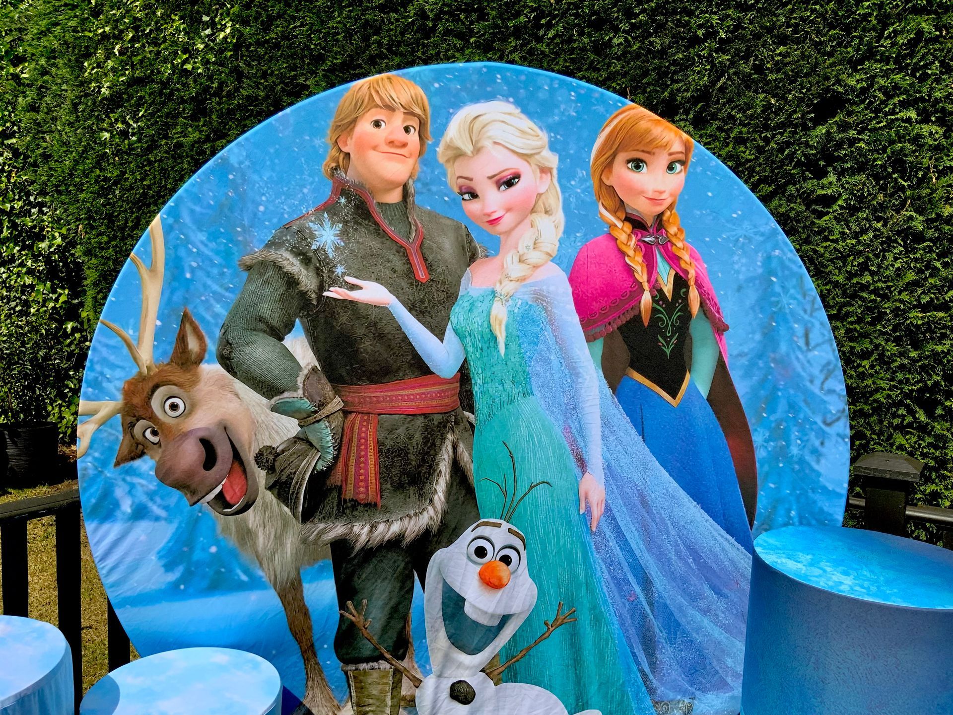 Our themes look absolutely stunning and will totally transform the space. The 6ft circle background is accompanied by 5 podium stands. Clients typically use the backdrop as their main photo area.