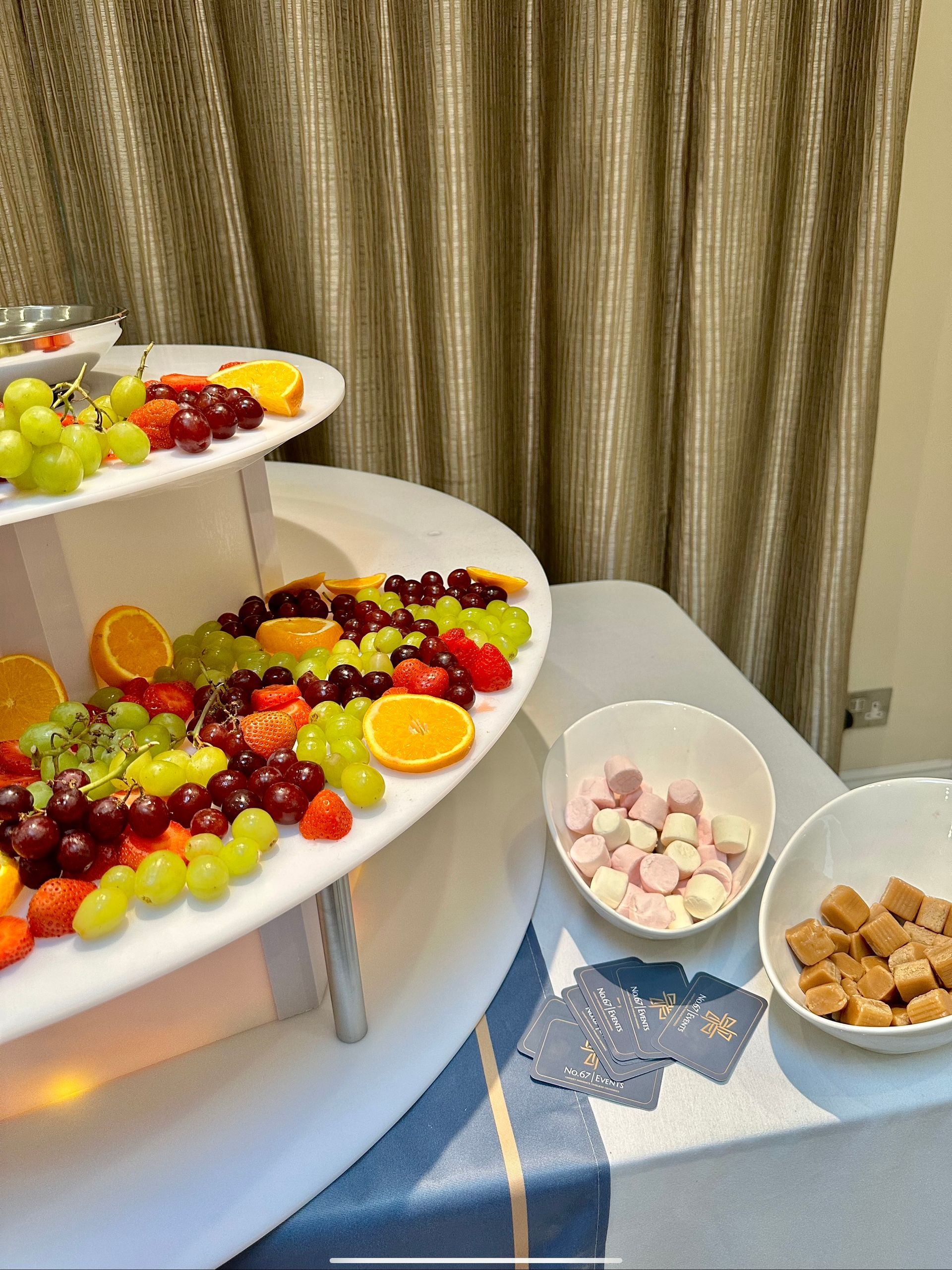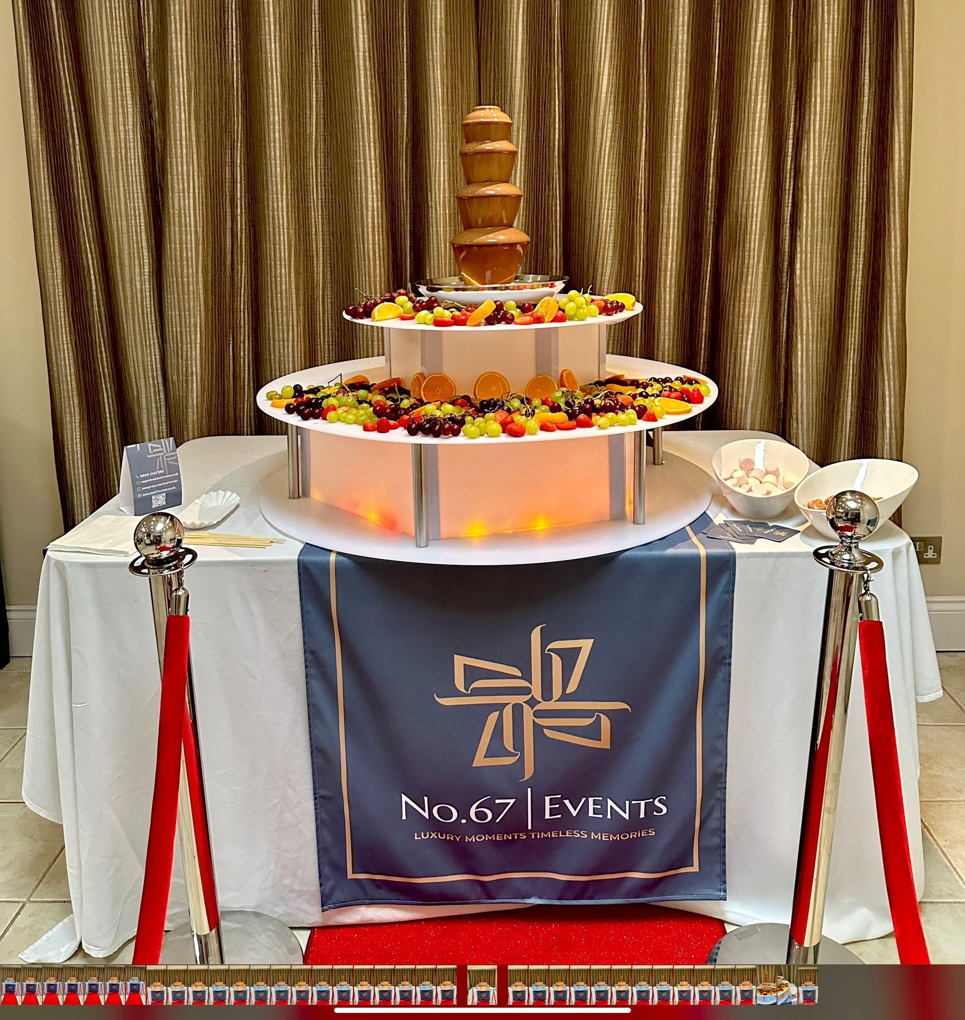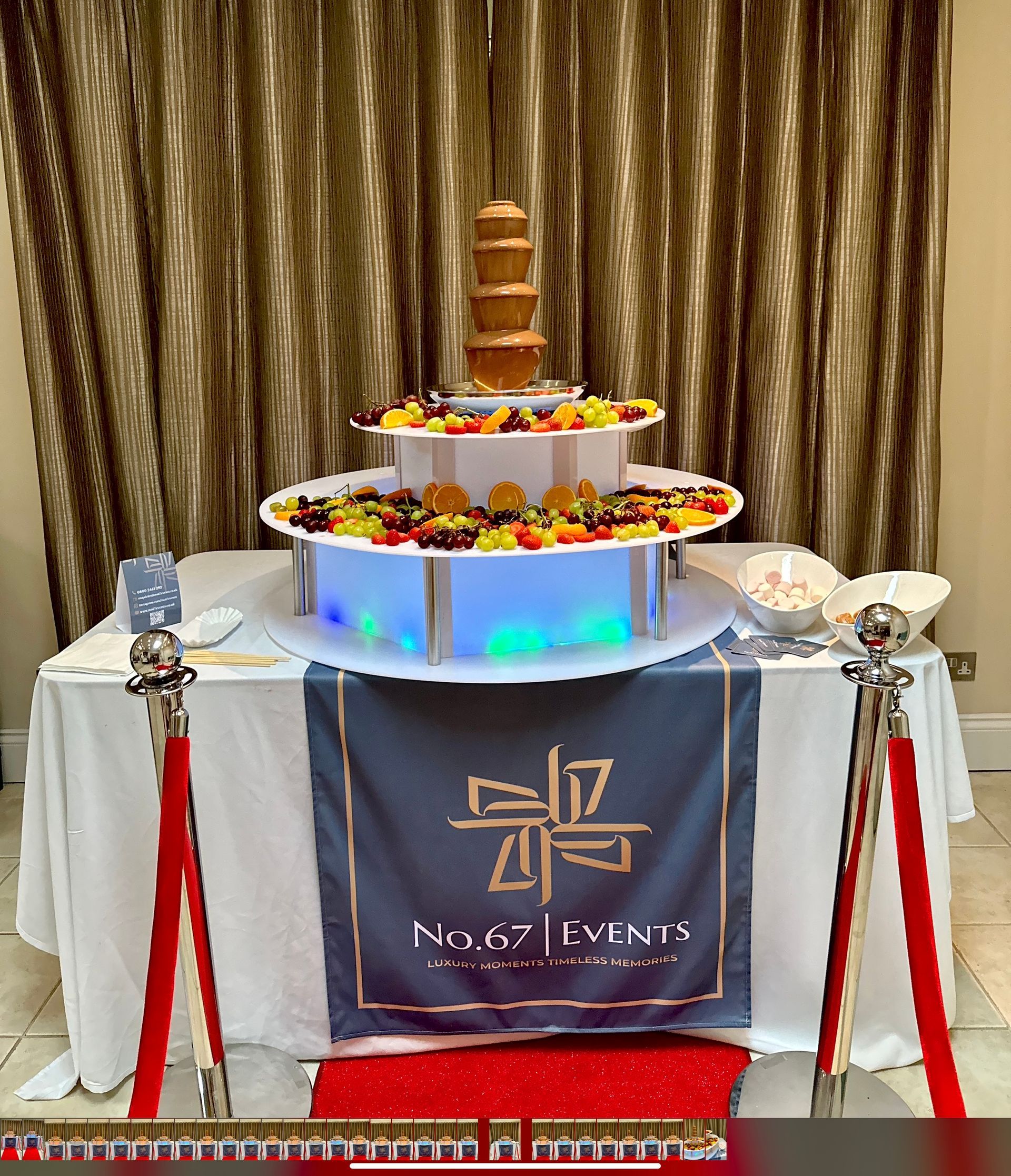 Our gorgeous chocolate fountain is adorned by a two tier led base and is sure to be the talking point at your celebration. The fountain can be covered in fruits, donuts, marshmallows, fudge and much more. Clients may select between white chocolate, milk chocolate or dark chocolate.