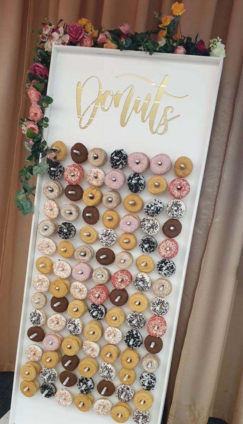 We recommend clients pair the donut wall with a Prosecco wall which complement each other very well.